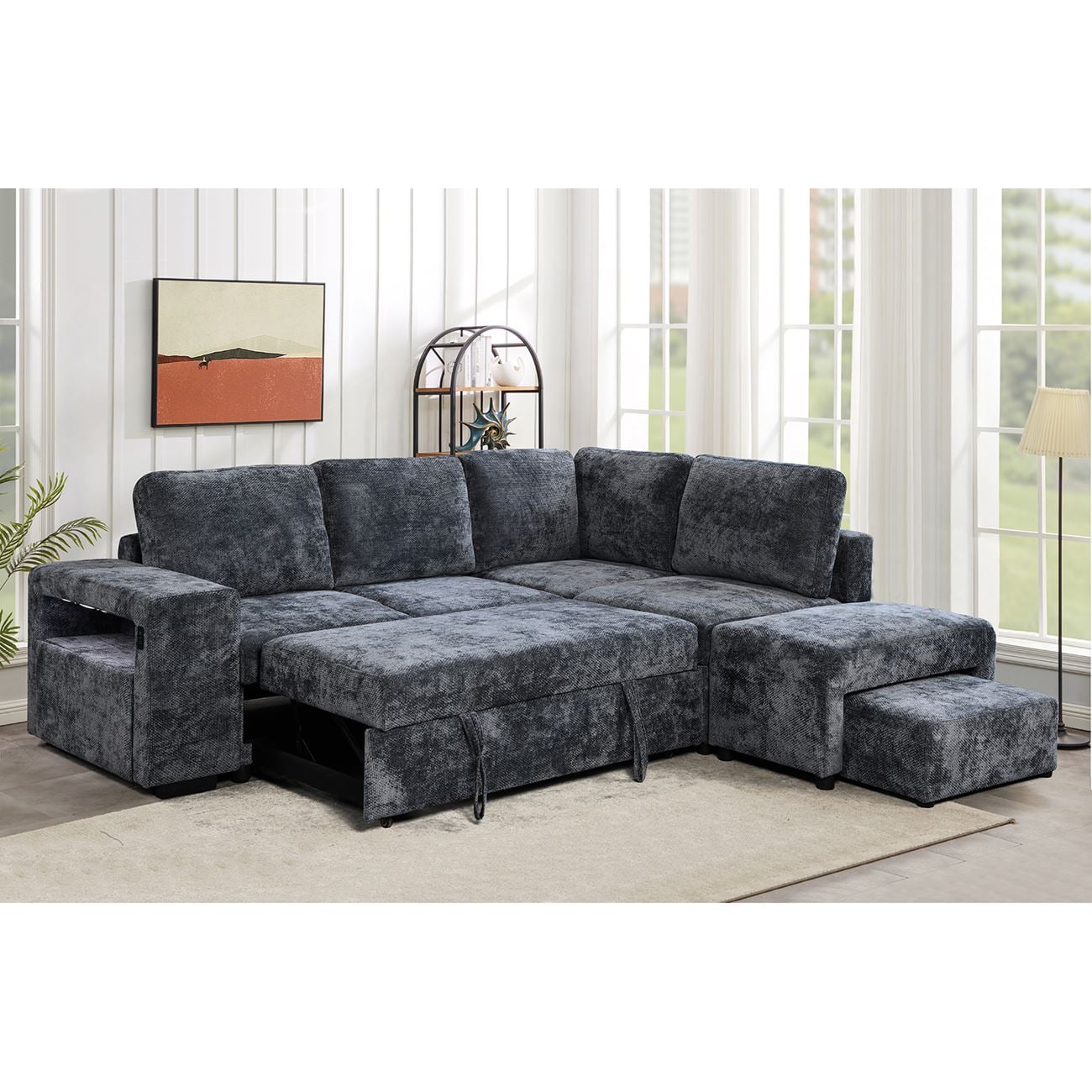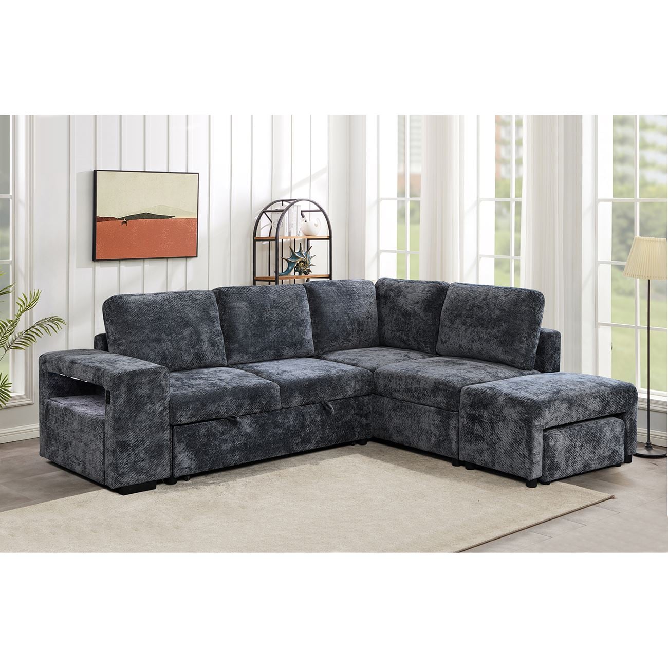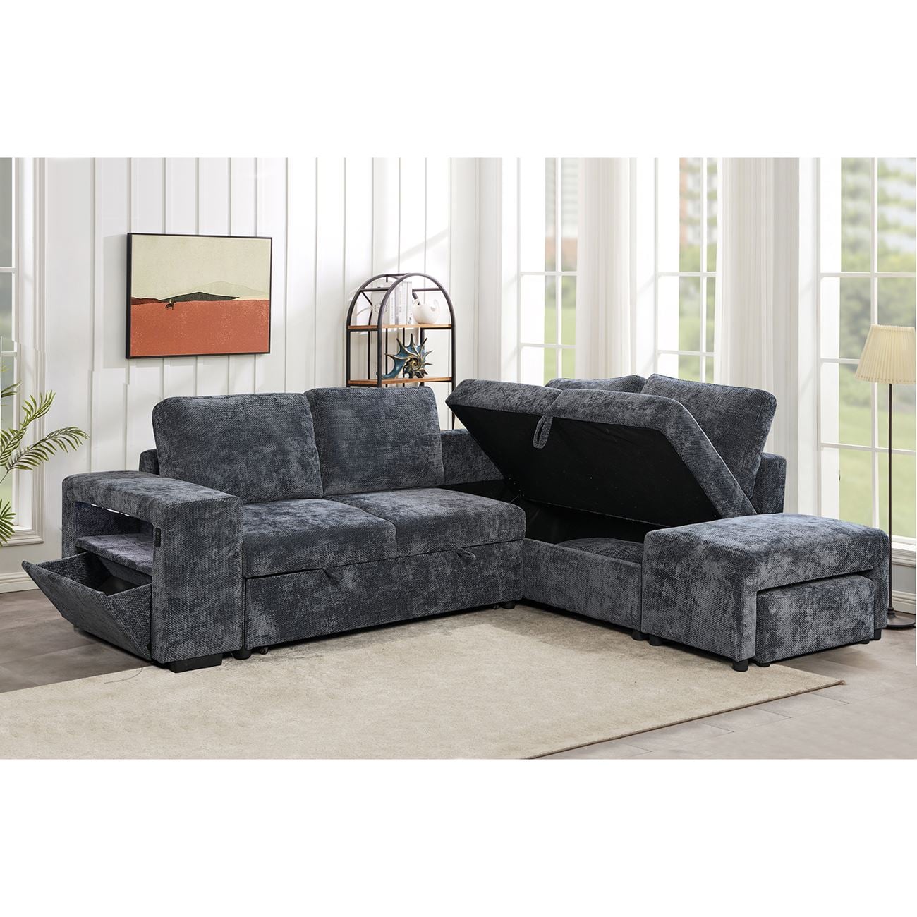 FLEXY Καναπές Αριστερή Γωνία – Κρεβάτι, με Χώρους Αποθήκευσης φωτιζόμενο, Ύφασμα Ανθρακί