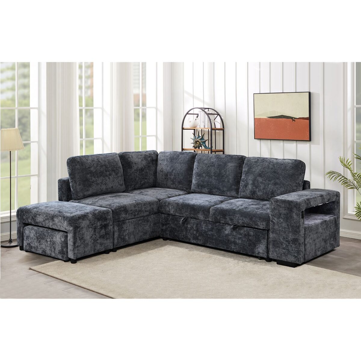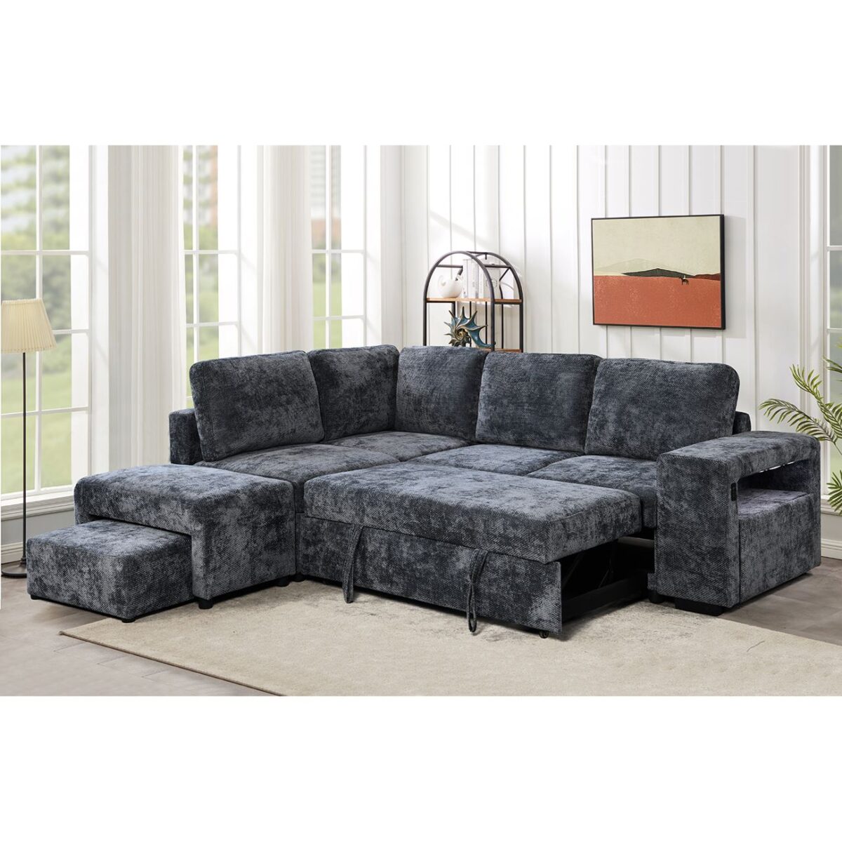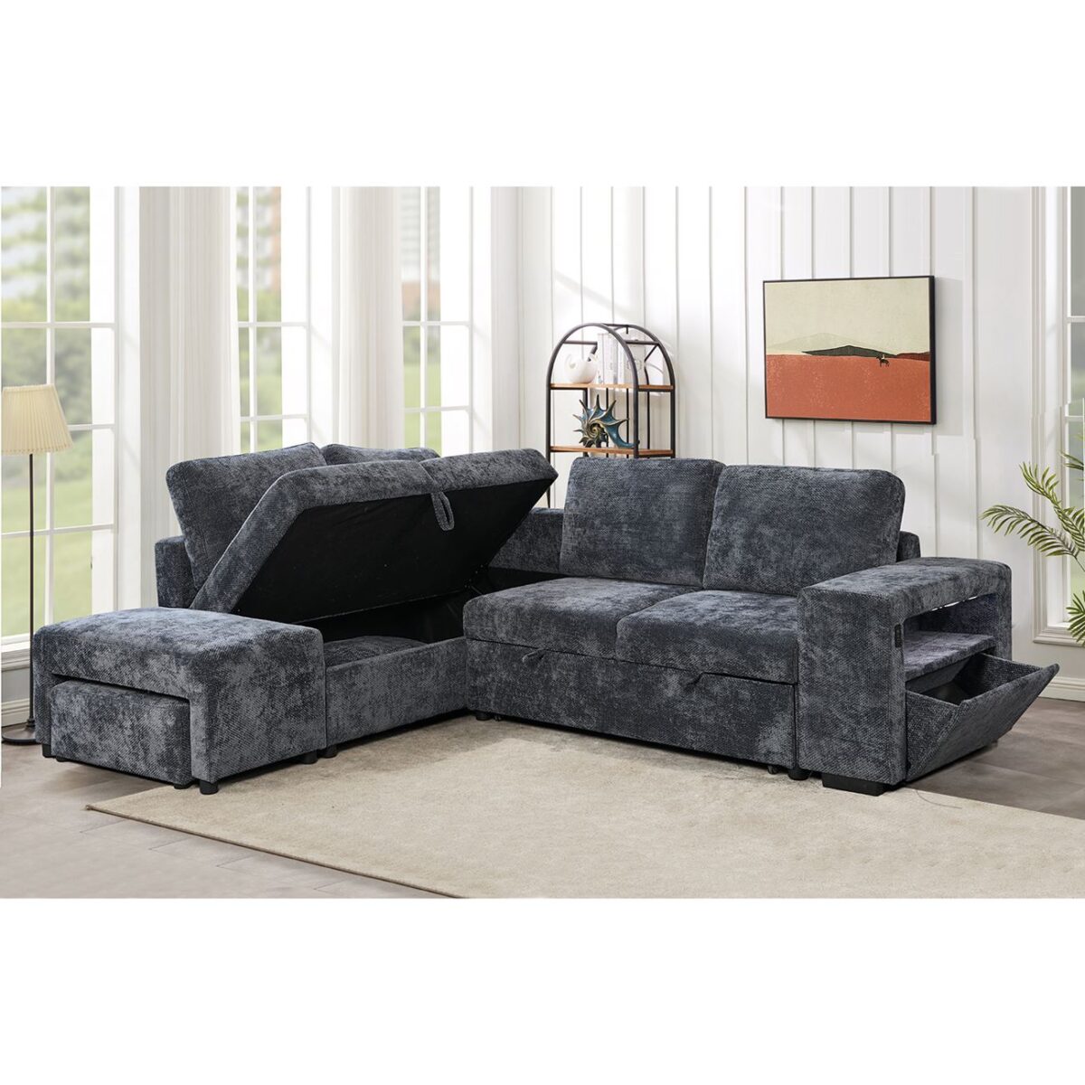 FLEXY Καναπές Δεξιά Γωνία – Κρεβάτι, με Χώρους Αποθήκευσης φωτιζόμενο, Ύφασμα Ανθρακί
