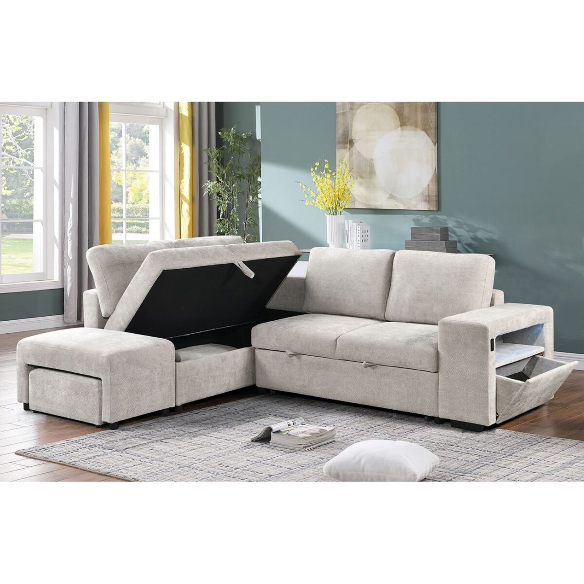 FLEXY Καναπές – Κρεβάτι-Γωνία, με Χώρους Αποθήκευσης, πλαϊνό φωτιζόμενο, Ύφασμα Μπεζ