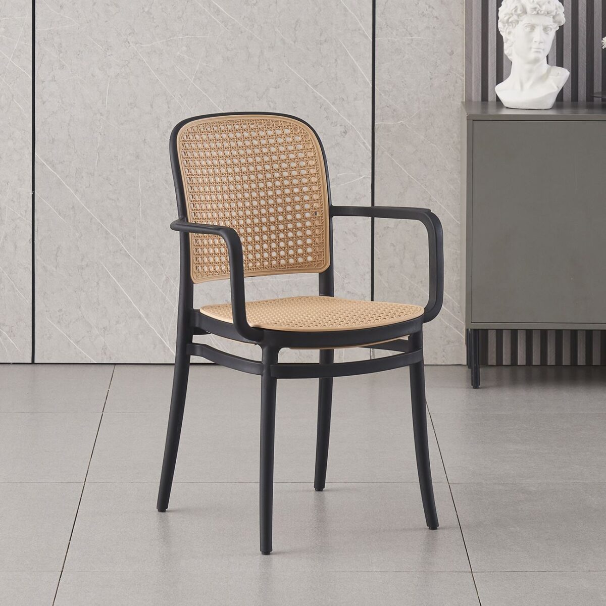 FLORENCE Πολυθρόνα PP Μαύρο, PP Rattan Μπεζ, Στοιβαζόμενη (54x54x84cm)