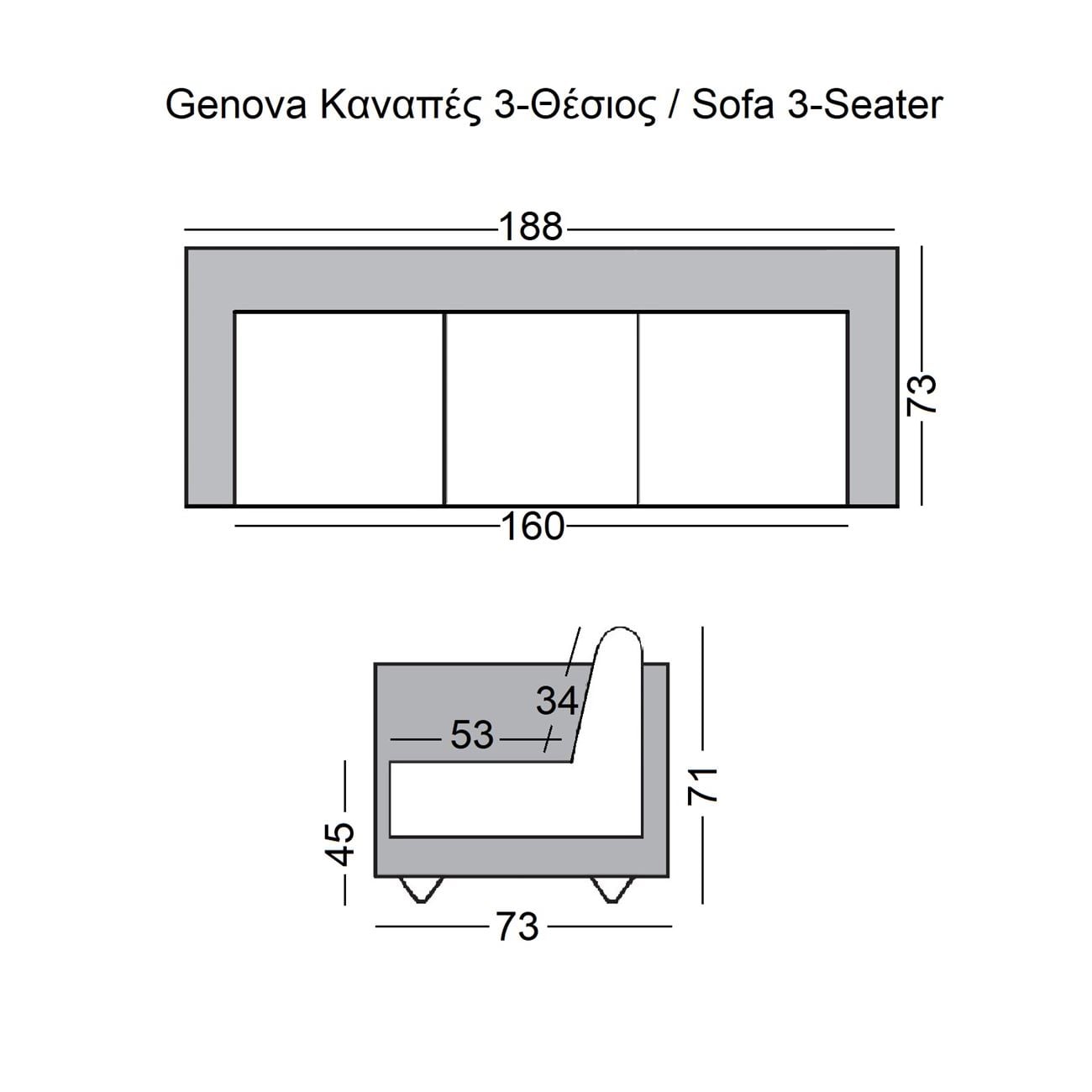 GENOVA Καναπές Σαλονιού Καθιστικού 3Θέσιος, Inox Pu Μαύρο (188x73x71cm)