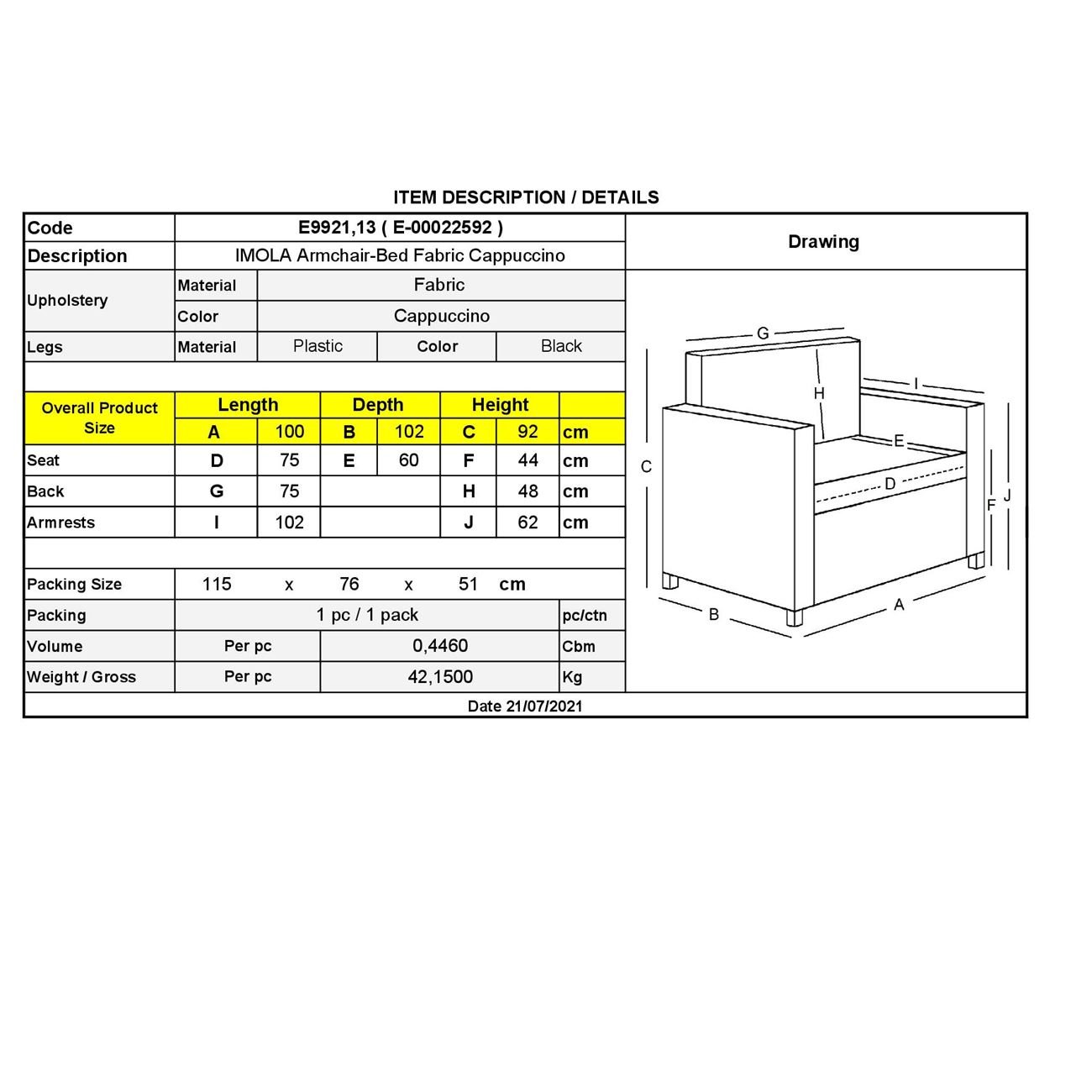 Ε9921,13 IMOLA Πολυθρόνα-Κρεβάτι Ύφασμα Cappuccino