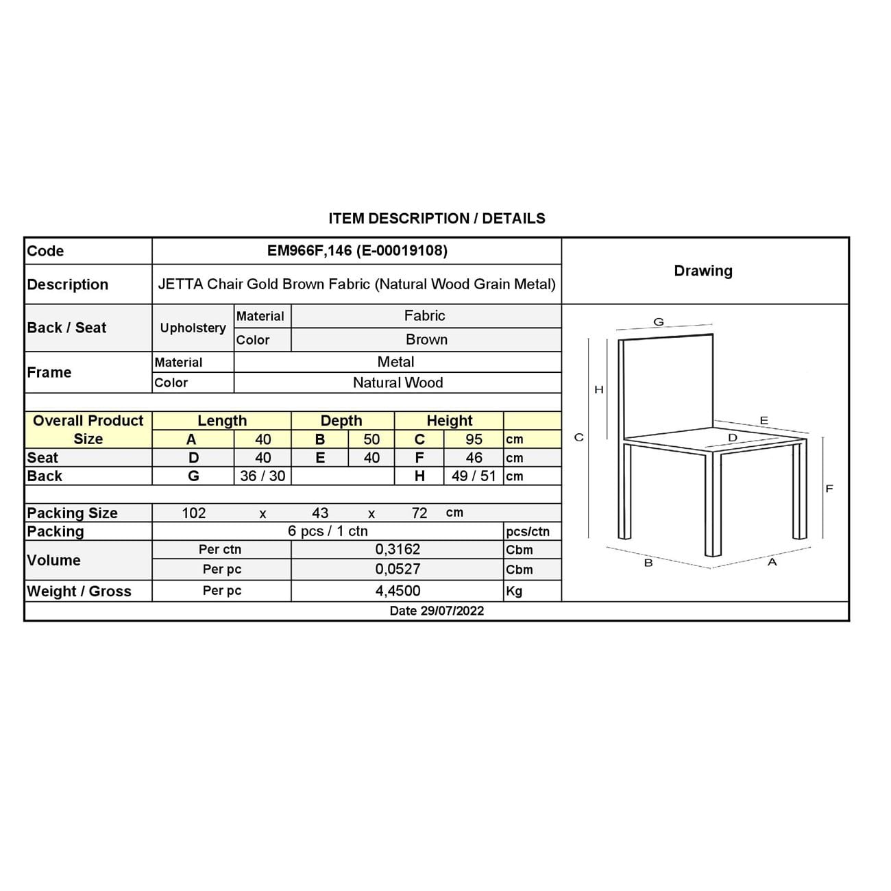 ΕΜ966F,146 JETTA Καρέκλα Ύφ.Καφέ/Μεταλ.Φυσικό (Συσκ.6)
