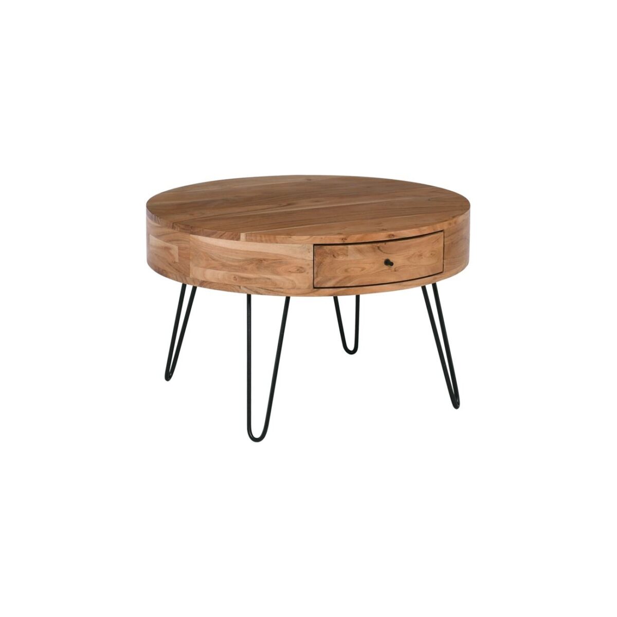 KARIM-W Τραπεζάκι Σαλονιού Καθιστικού, Μέταλλο Βαφή Μαύρο, Ξύλο Ακακία Φυσικό (Φ70xH.42cm)