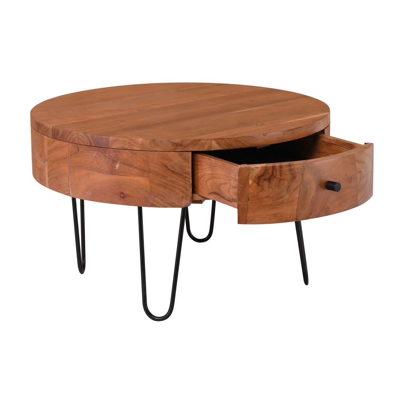 ΕΑ7077,W KARIM-W Τραπ.Σαλονιού Φ70x42cm (1-Συρτ) Ακακία Φυσικό/Μετ.Μαύρο