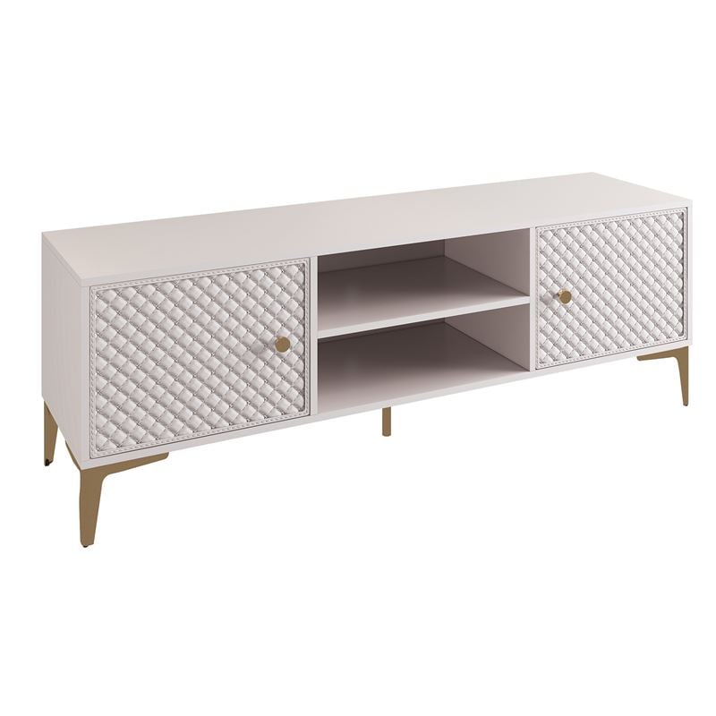 LANA Έπιπλο TV Απόχρωση Εκρού, με πρόσοψη Pu Καπιτονέ