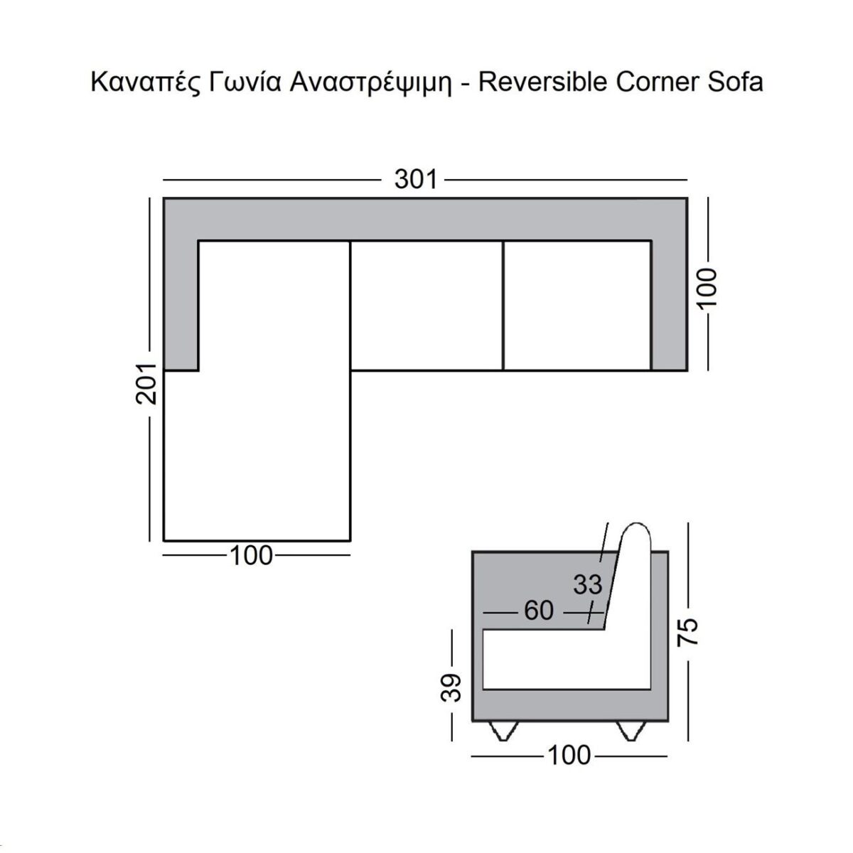 Ε9820,2 LARRY Καναπές Γωνία Αναστρέψιμη – Ύφασμα Εκρού