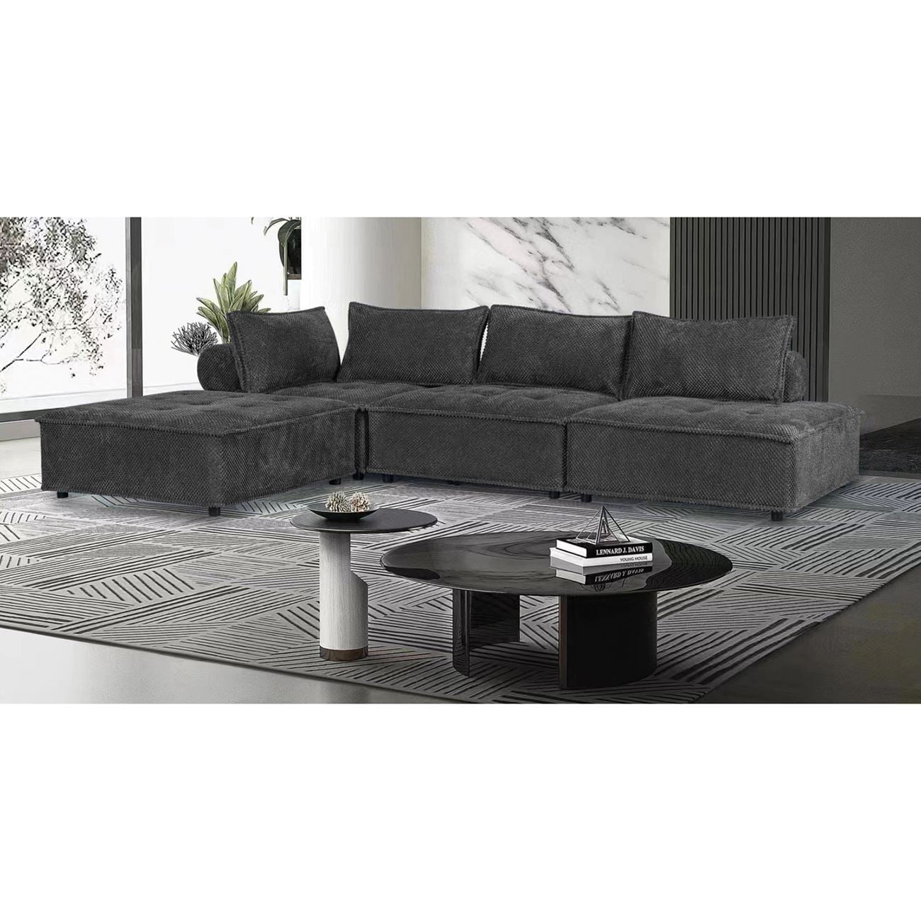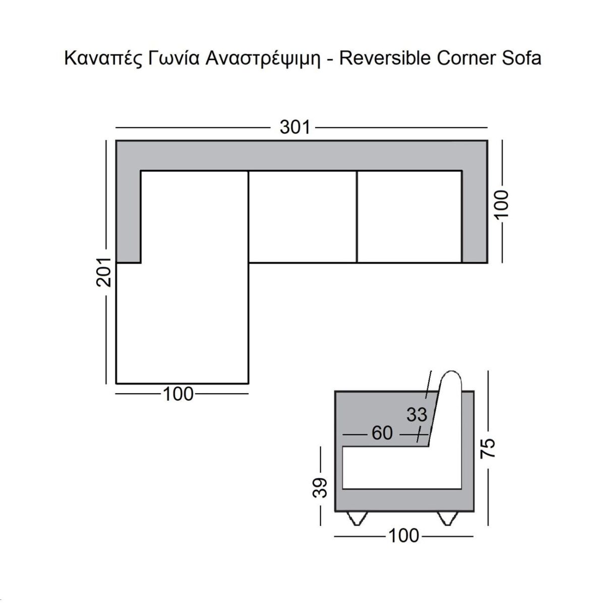 Ε9820,1 LARRY Καναπές Γωνία Αναστρέψιμη – Ύφασμα Σκούρο Γκρι