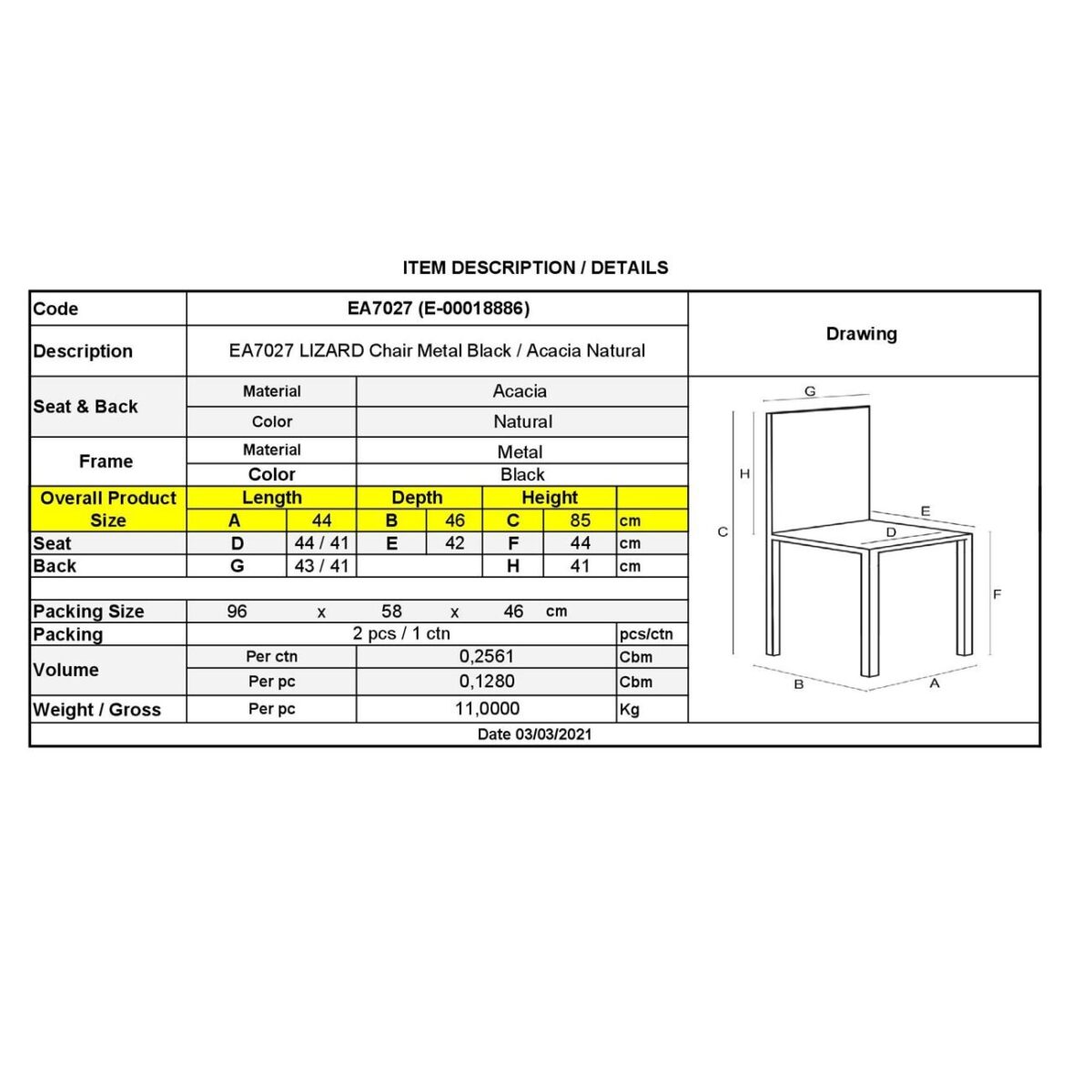 ΕΑ7027 – LIZARD Καρέκλα Ακακία Φυσικό/Μεταλ.Μαύρο