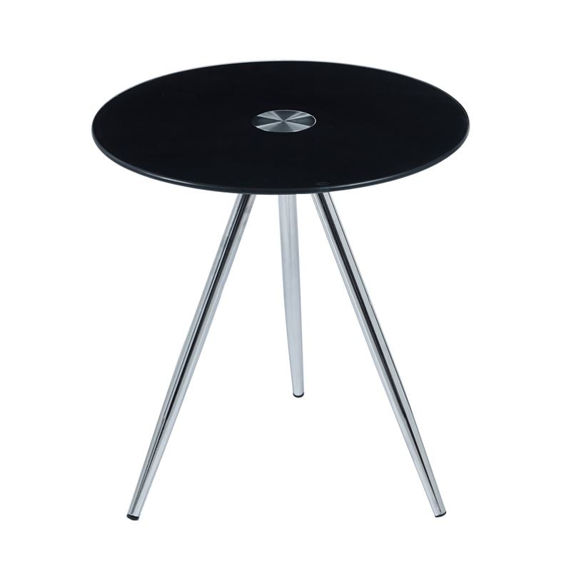 MABEL Τραπεζάκι Βοηθητικό Μέταλλο Χρώμιο – Γυαλί Μαύρο Tempered 8mm