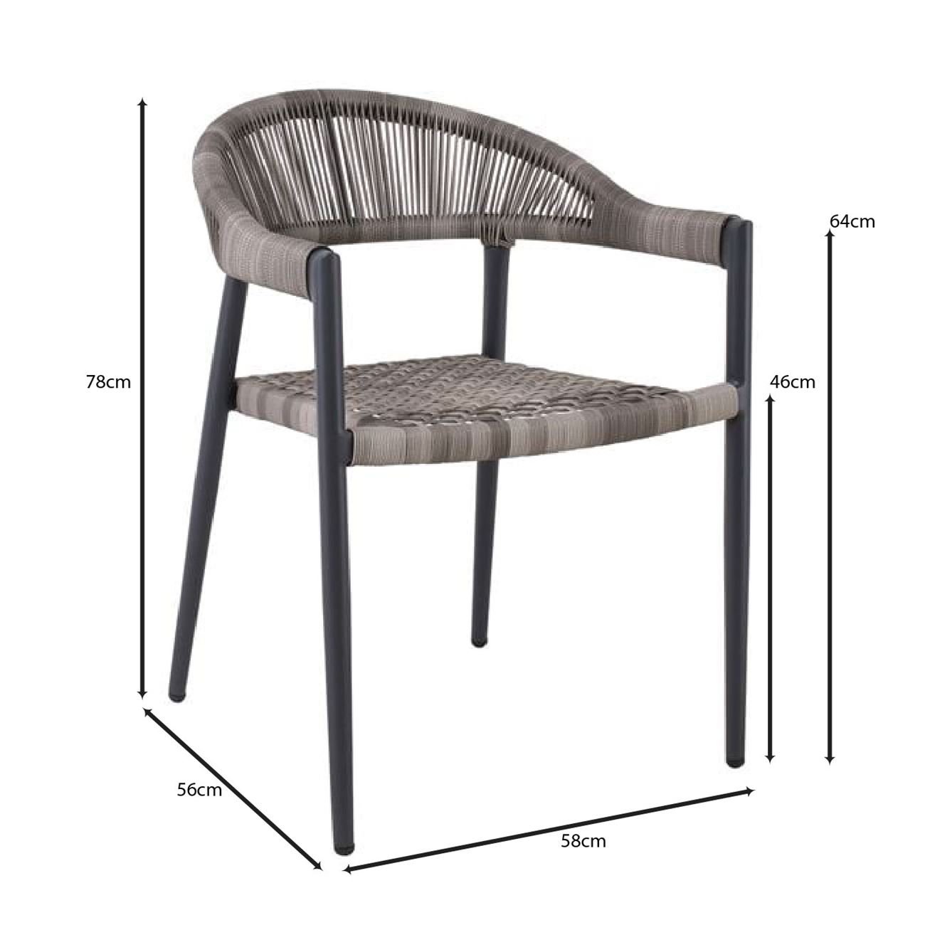 MADISON Πολυθρόνα Βεράντας- Κήπου, ALU Ανθρακί, Rope Wicker Γκρι, Στοιβαζόμενη (58x56x78cm)