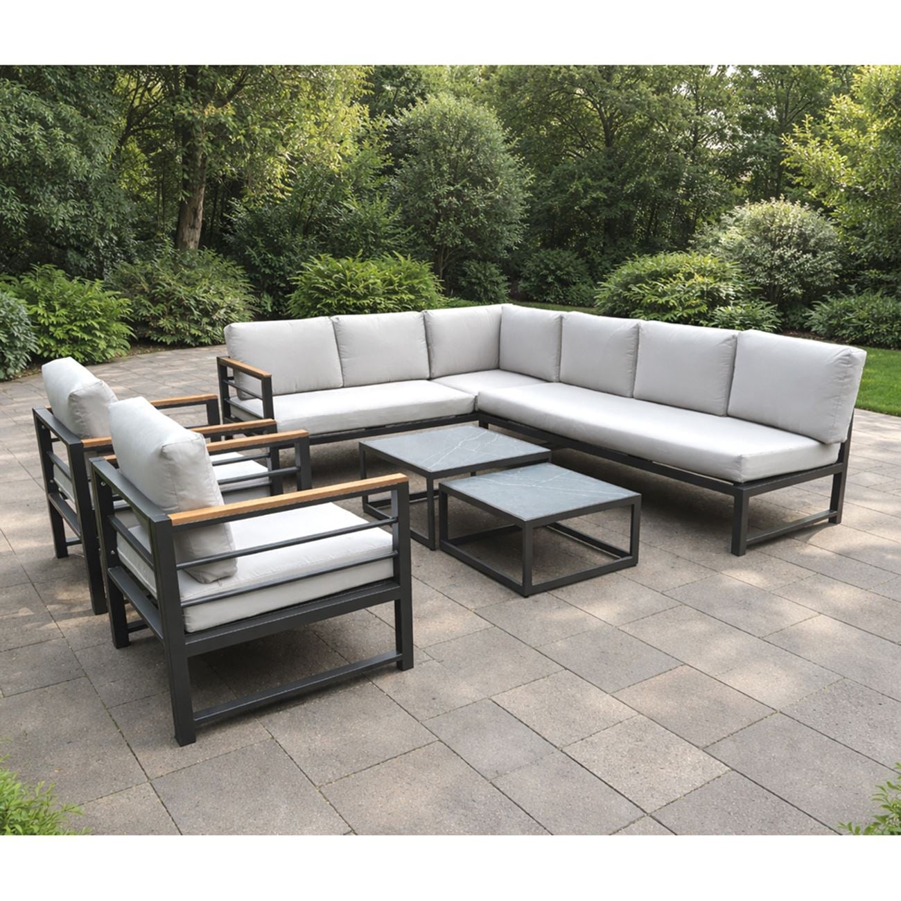 MARILIAN Set Σαλόνι Κήπου, Πολυμορφικό 6τεμ, Μέταλλο Βαφή Ανθρακί, Μαξιλάρια Γκρι (2 Πολυθρ+2 Καναπ+2 Τραπεζάκια)