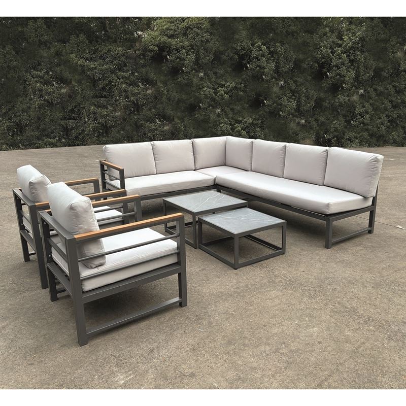 MARILIAN Set Σαλόνι Κήπου, Πολυμορφικό 6τεμ, Μέταλλο Βαφή Ανθρακί, Μαξιλάρια Γκρι