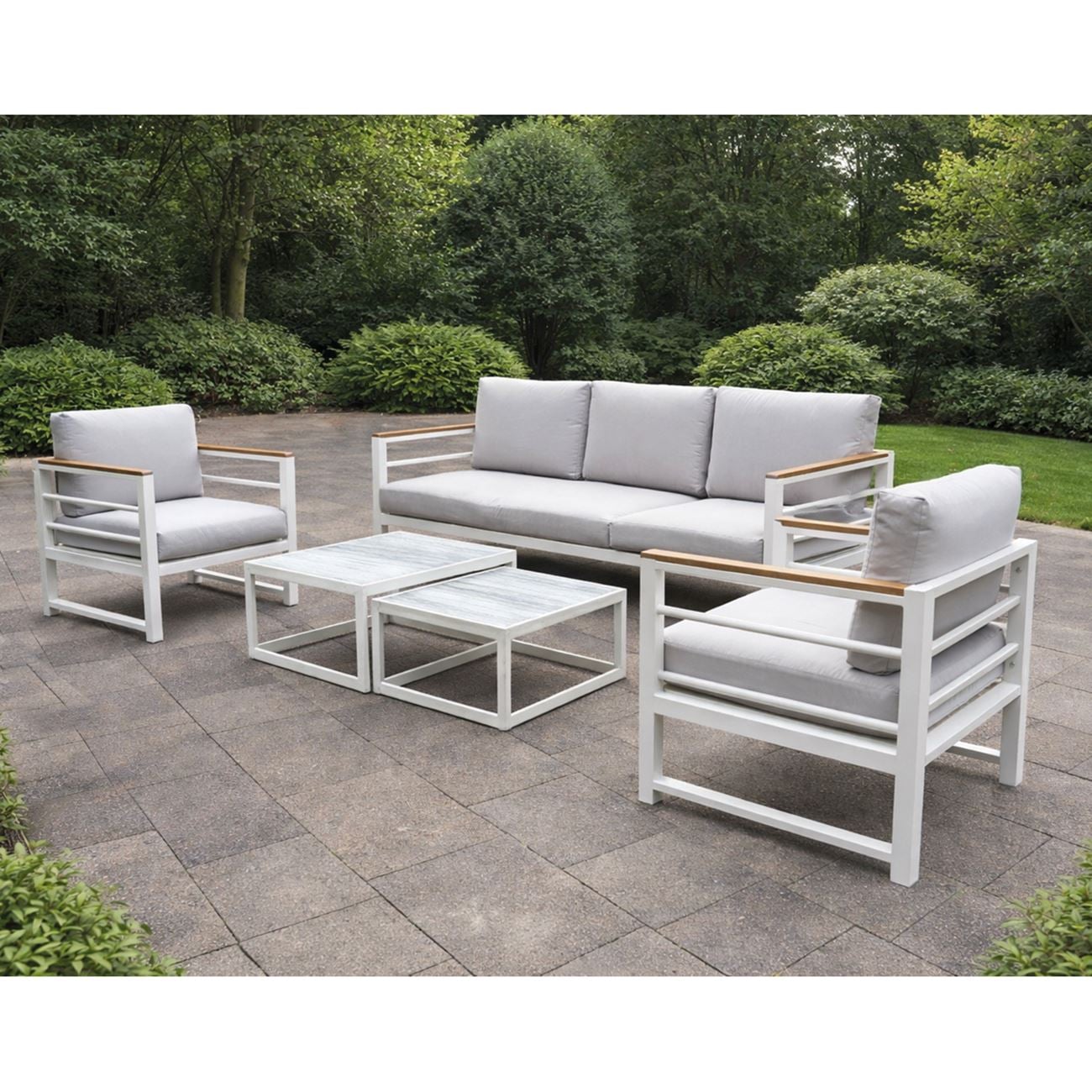 MARILIAN Set Σαλόνι Κήπου, 5τεμ, Μέταλλο Βαφή Άσπρο, Μαξιλάρια Γκρι