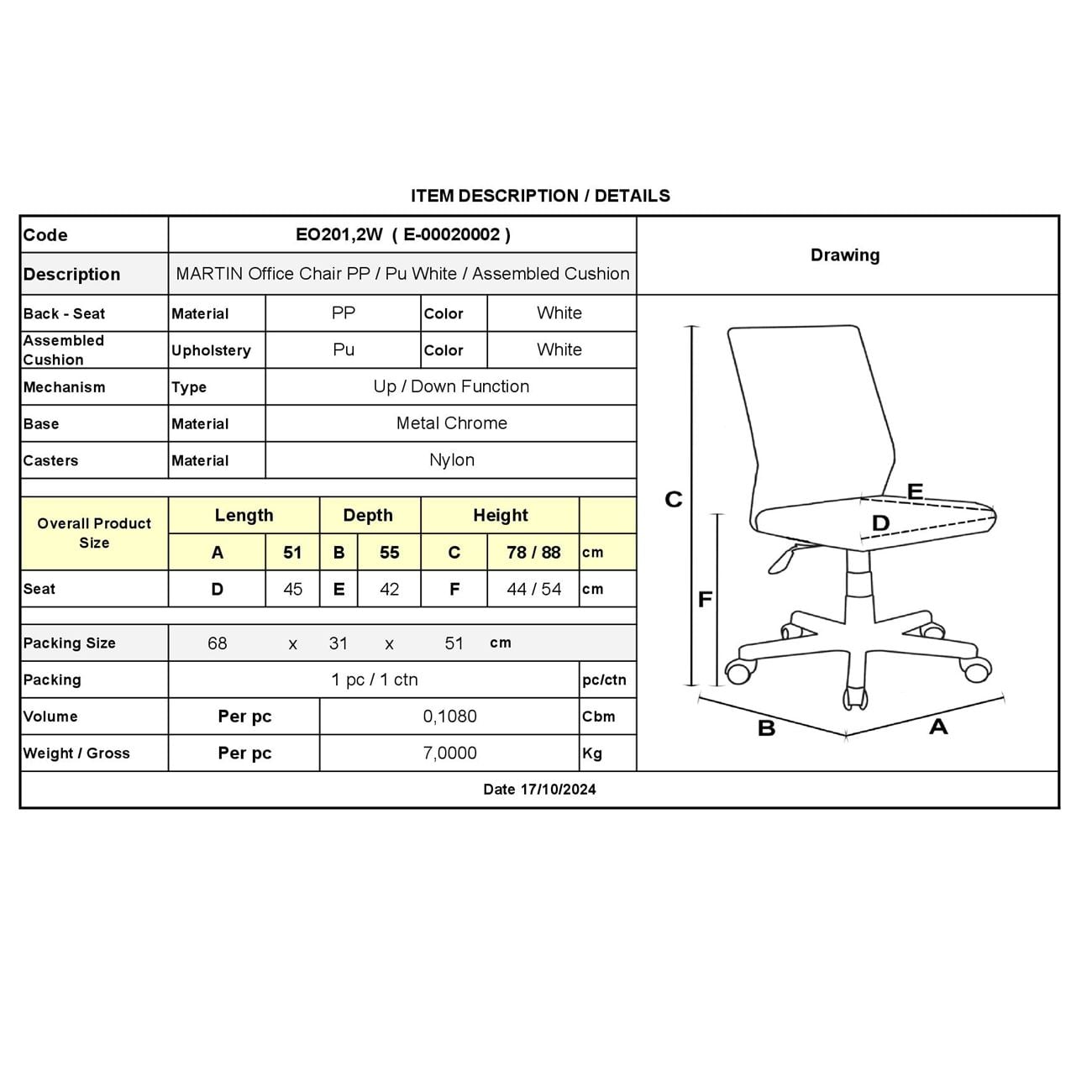 ΕΟ201,2W MARTIN Γραφείου Καρ.PP/Pu Άσπρο (Μοντ/νη ταπετσαρία)