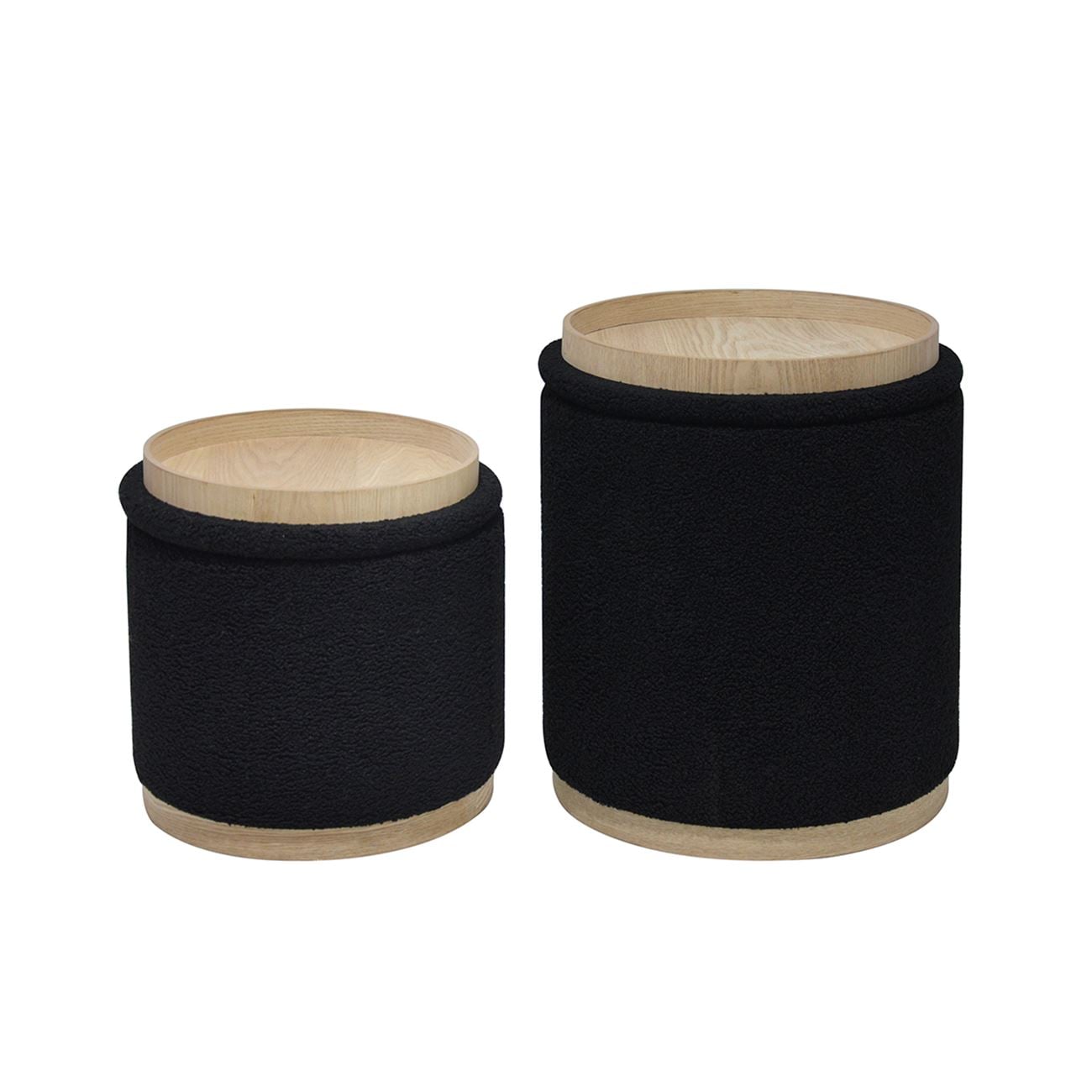MATIC Set-2 Σκαμπό-Τραπεζάκι με Αποθηκευτικό Χώρο, Teddy Ύφασμα Μαύρο (Φ38cm H.45cm + Φ34cm H.32cm)