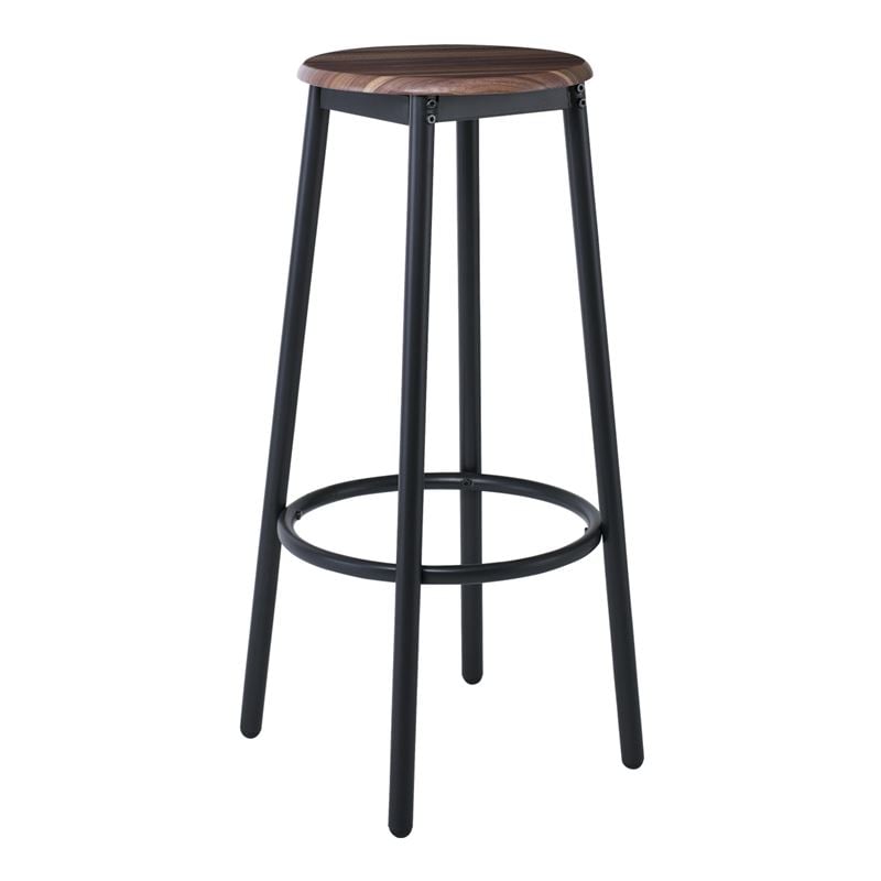 MAYER Σκαμπό BAR, Μέταλλο Βαφή Ανθρακί, Κάθισμα Απόχρωση Καρυδί