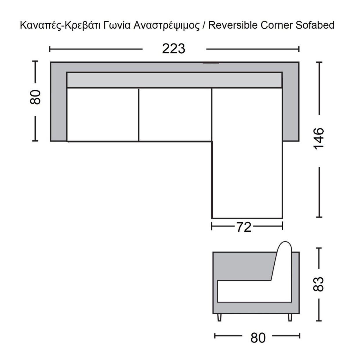 MONTREAL Καναπές – Κρεβάτι Γωνία Αναστρέψιμη με Χώρο Αποθήκευσης, Ύφασμα Ανθρακί
