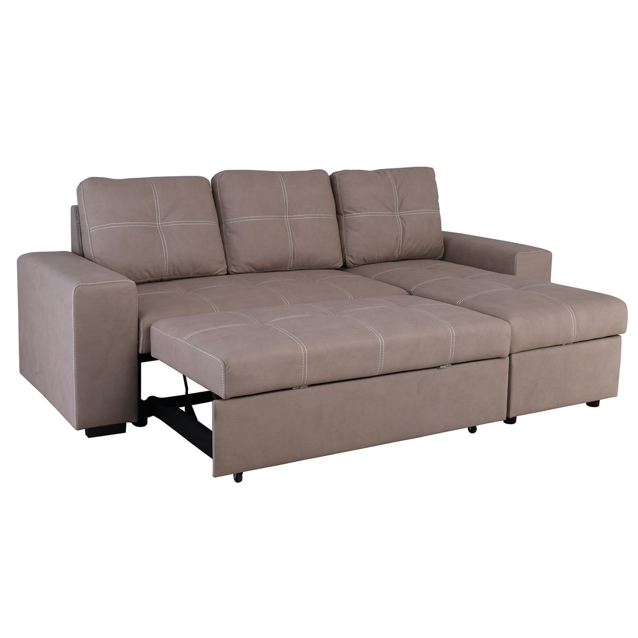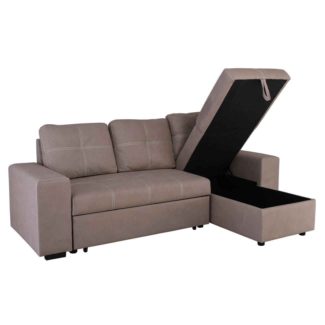 MONTREAL-Max Nabuk Καναπές Κρεβάτι Γωνία Αναστρέψιμη με Αποθηκευτικό Χώρο, Cappuccino