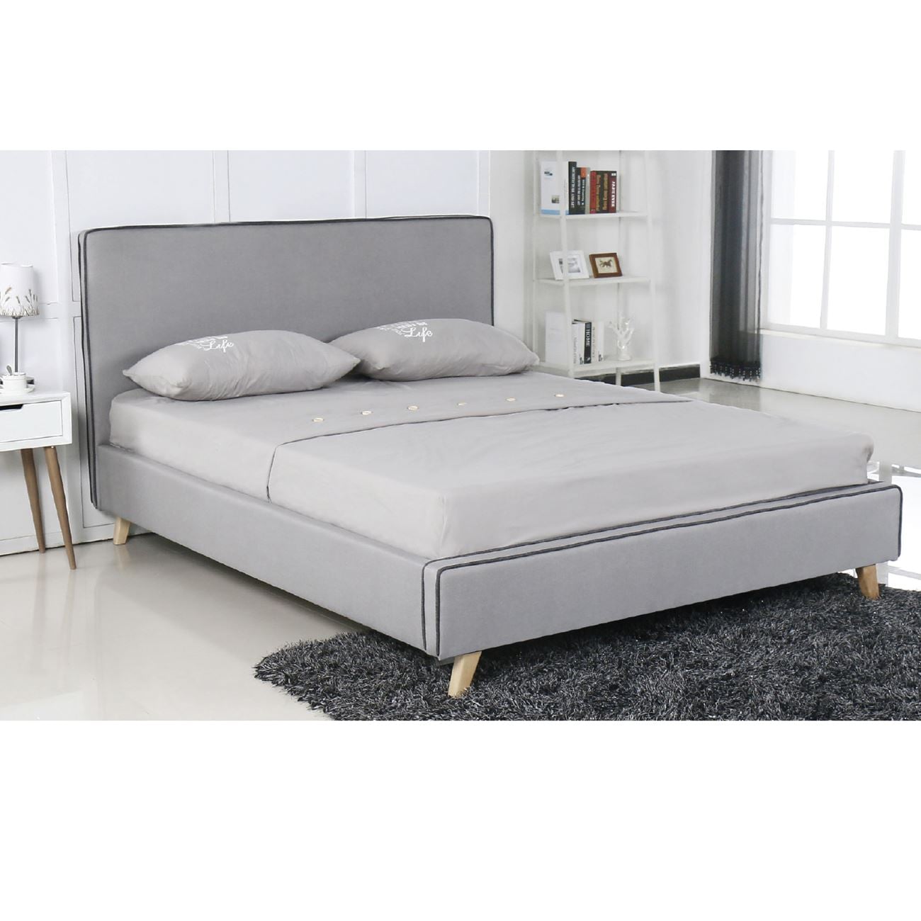 MORISSON Κρεβάτι Διπλό, για Στρώμα 140x190cm, Ύφασμα Ανοιχτό Γκρι