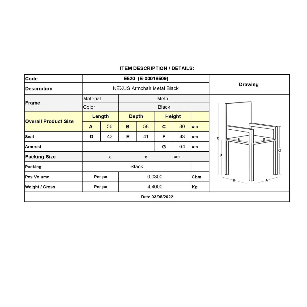 Ε520 – NEXUS Πολυθρόνα Μεταλ.Μαύρο