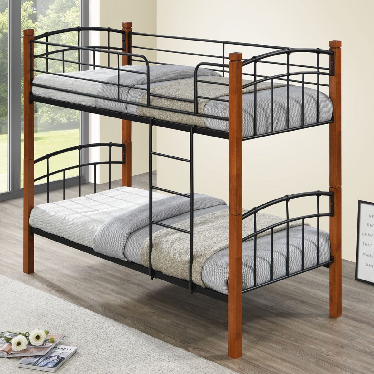 Ε80730 NORTLAN Kρεβάτι/Κουκέτα 90x190cm Mεταλ.Μαύρο/Ξύλο Καρυδί