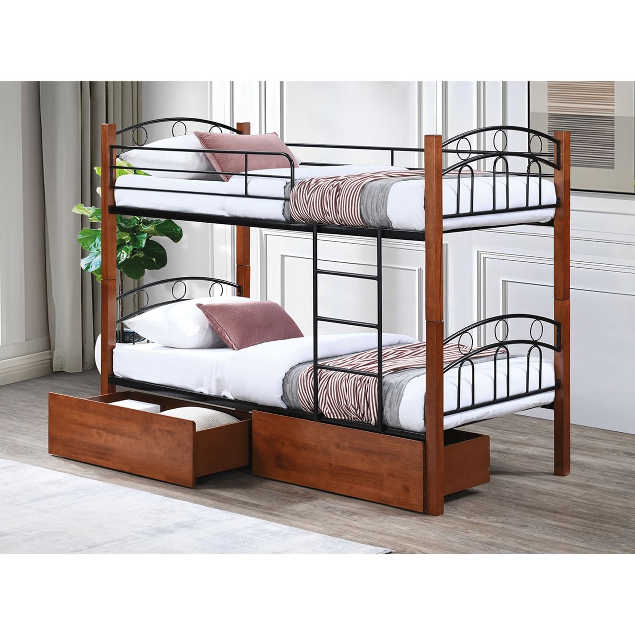 NORTON Κρεβάτι Κουκέτα με 2 Συρτάρια 94x47x30cm, Μέταλλο Βαφή Μαύρο-Ξύλο Καρυδί