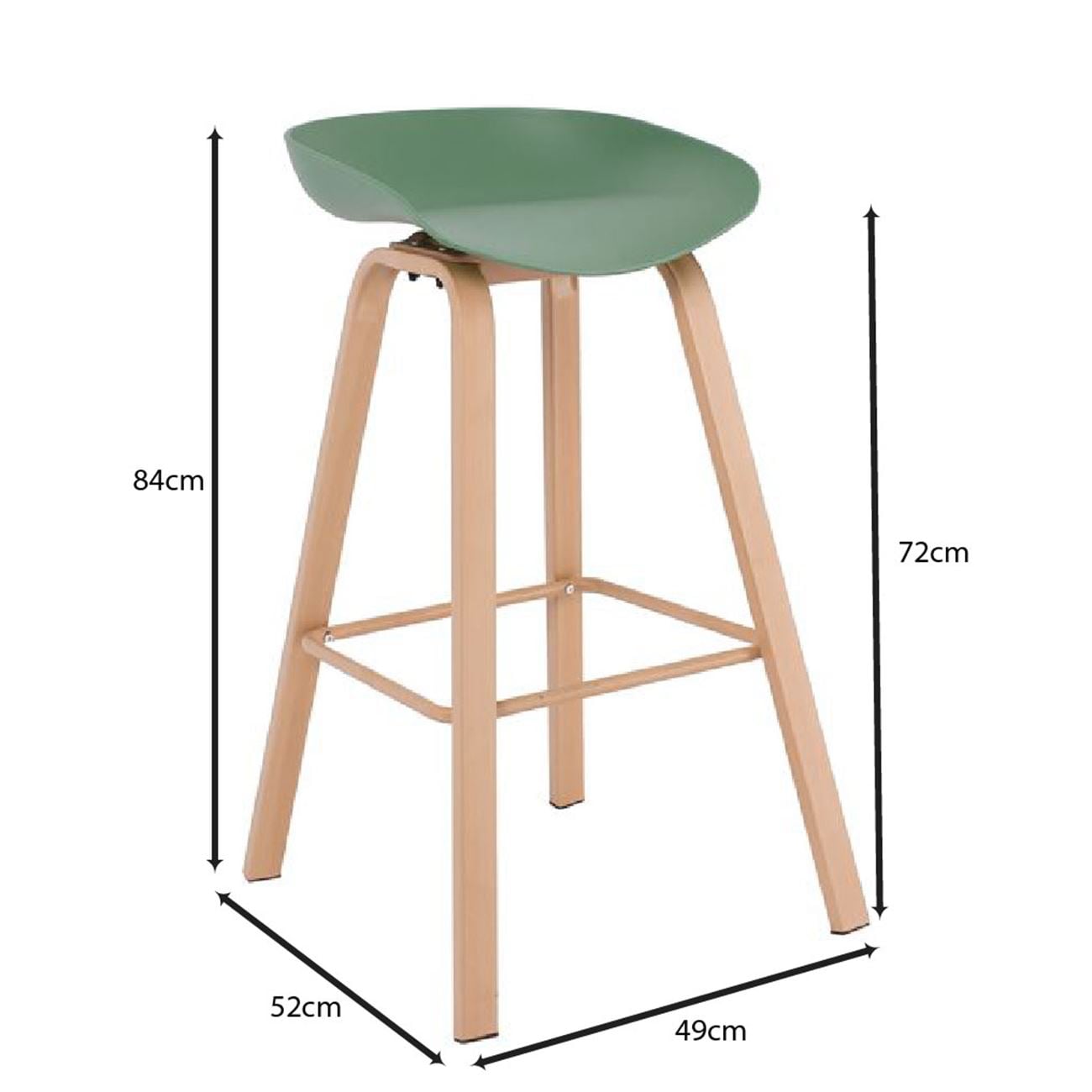 ΕΜ1531,3 PENT Σκαμπό Bar Μέταλλο Φυσικό, PP Πράσινο