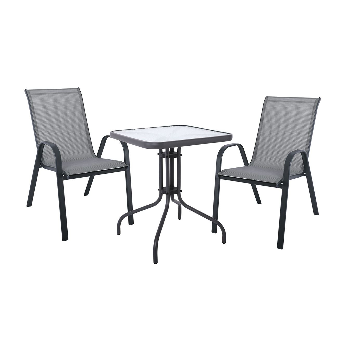 Ε270,52S RIO Set (Τραπ.60×60+2 Πολυθρ) Μεταλ.Ανθρακί/Text.Γκρι