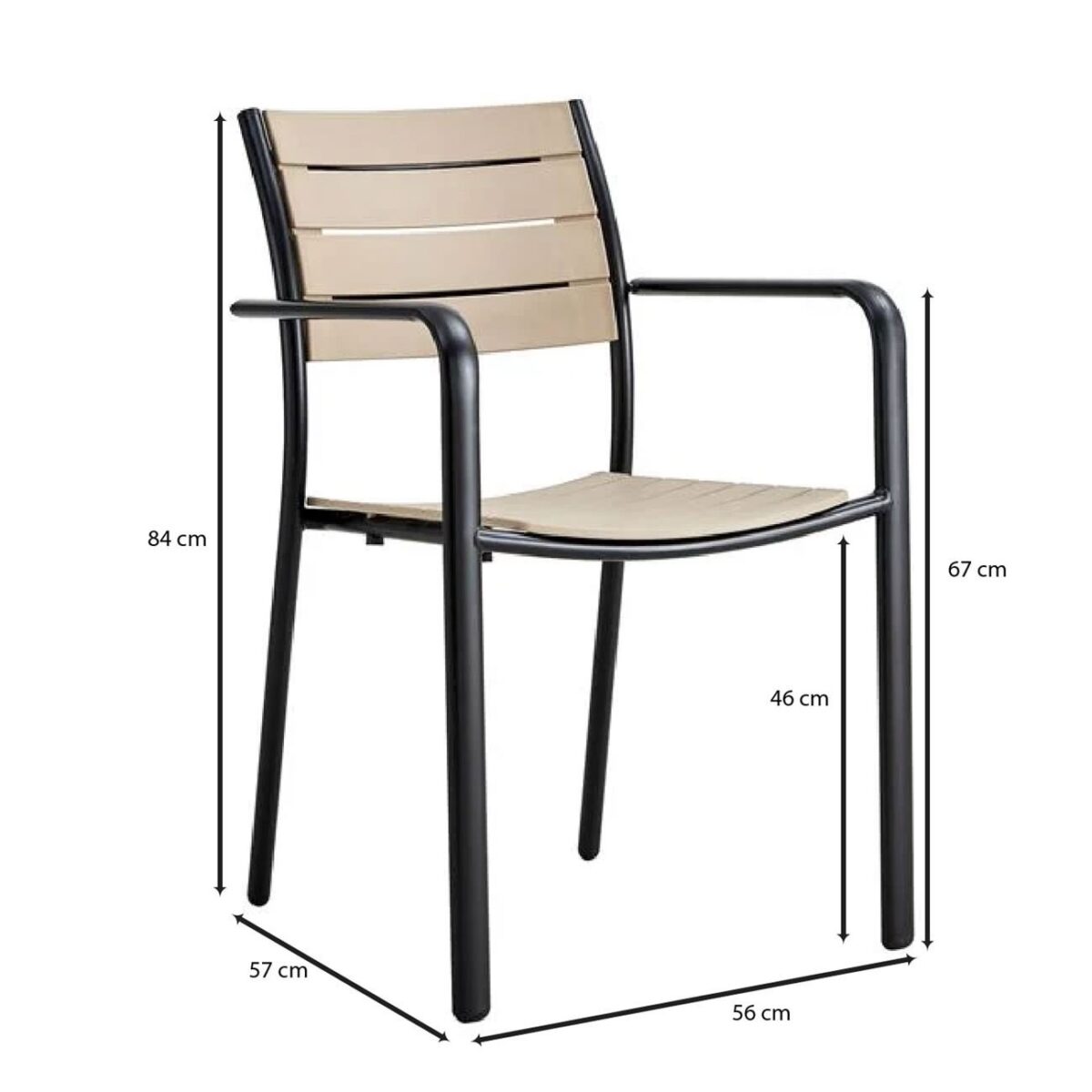 SAGA Πολυθρόνα Στοιβαζόμενη, Μέταλλο Βαφή Μαύρο, PP-UV Tortora (56x57x84cm)