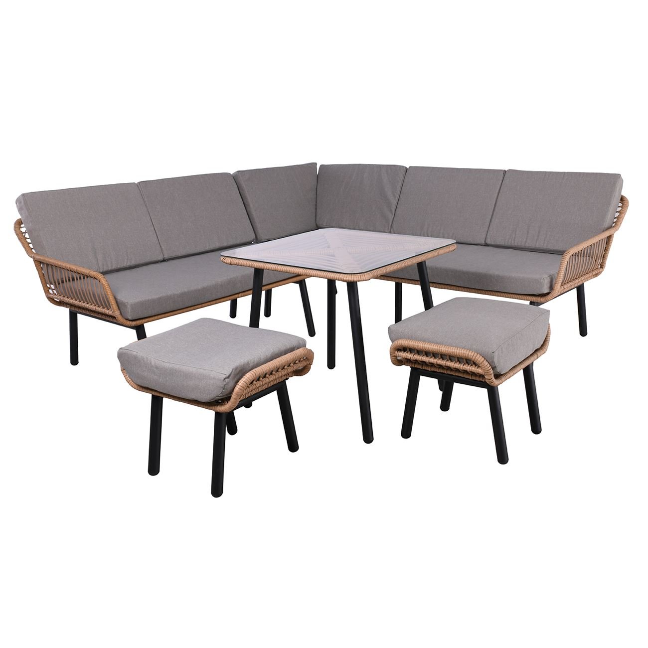 Ε2801 SALSA CORNER Set (Τρ.70×70+Καν.Γωνία+2 Σκαμπό) Μετ.Μαύρο/Wicker Φυσικό, Μαξ.Γκρι