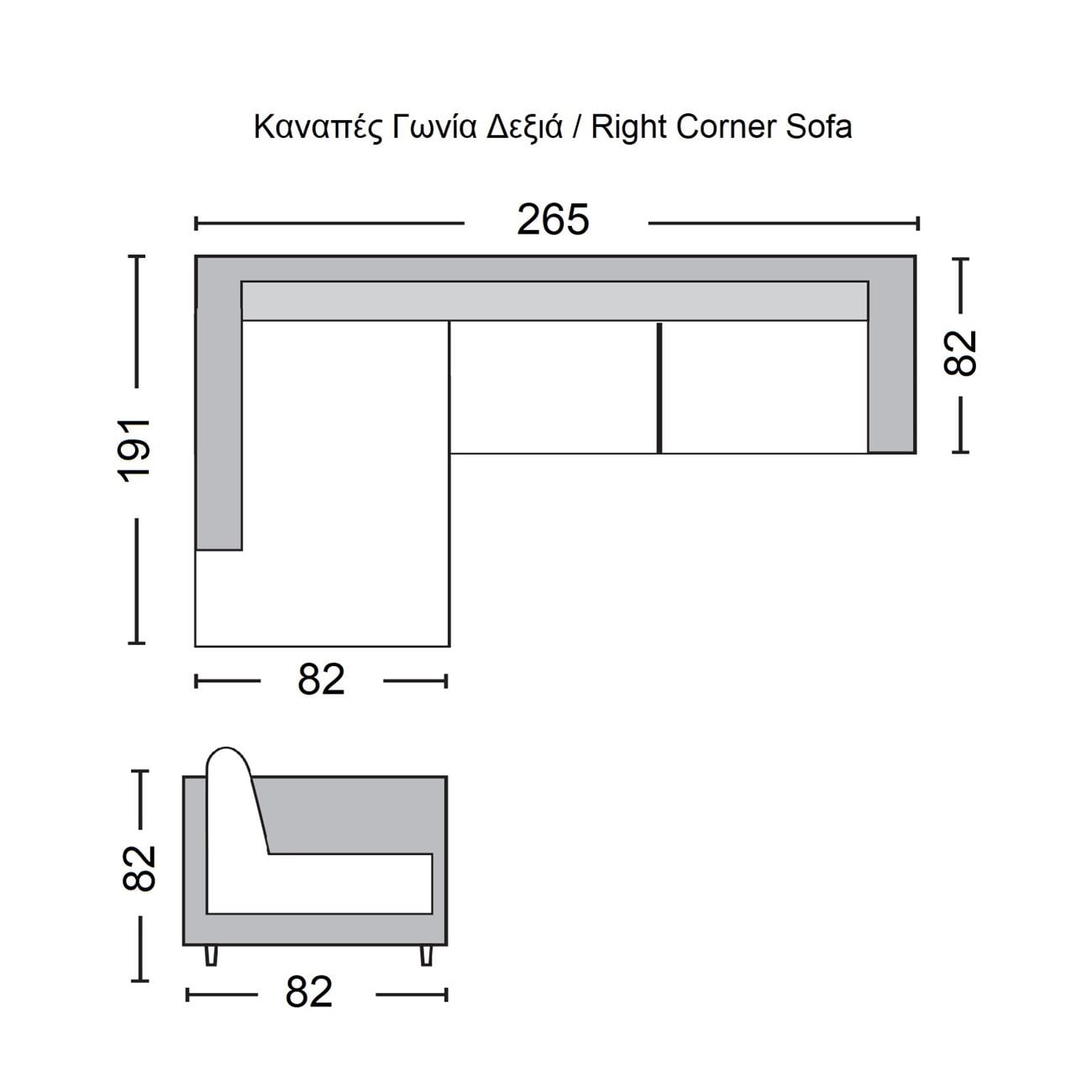 Ε989,6R SECTOR Καναπές Γωνία/Δεξιά Pu Μαύρο