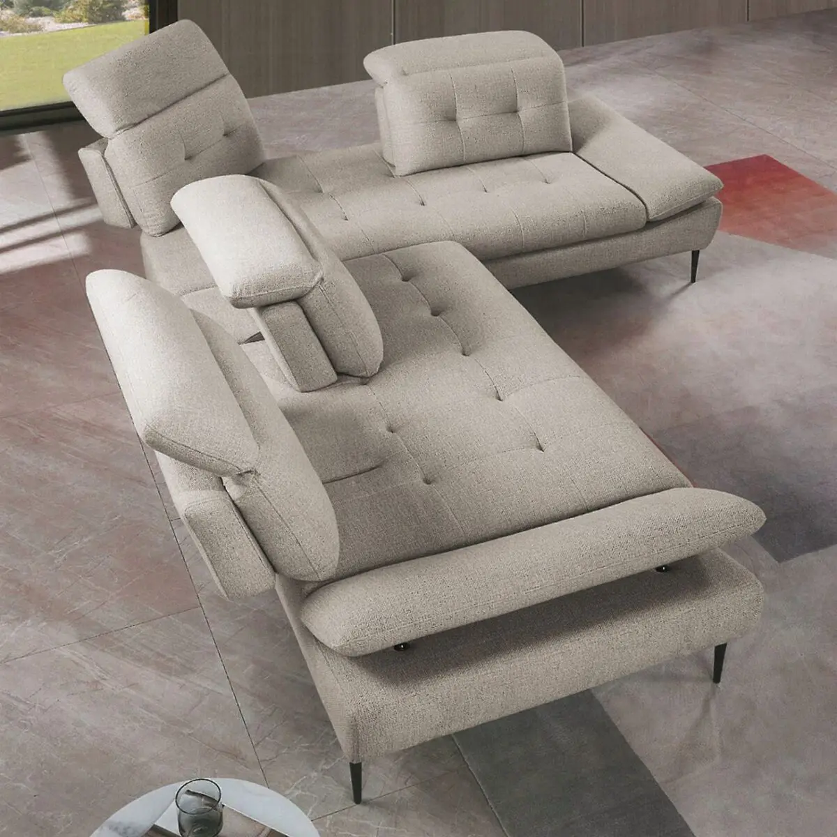 SELBY Καναπές Σαλονιού Αριστερή Γωνία, Ανακλινόμενα Κεφαλάρια, Ύφασμα Μπεζ
