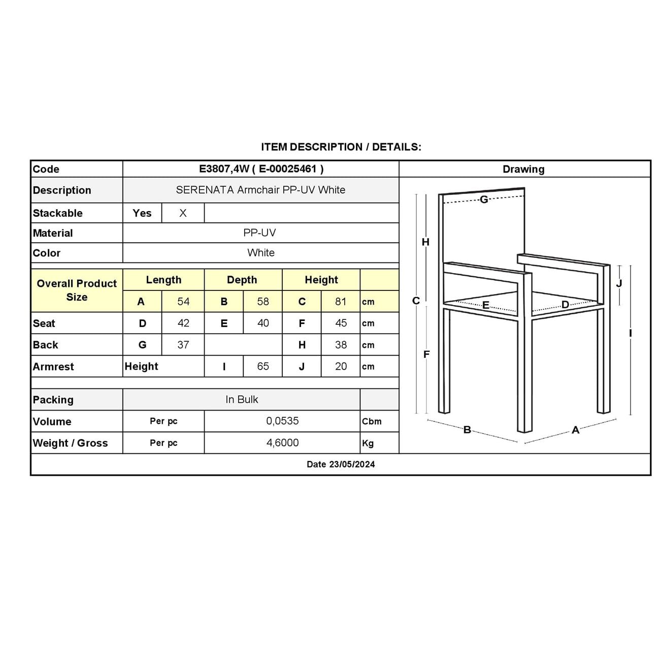 Ε3807,4W SERENATA Πολυθρόνα PP-UV Άσπρο , Στοιβαζόμενη