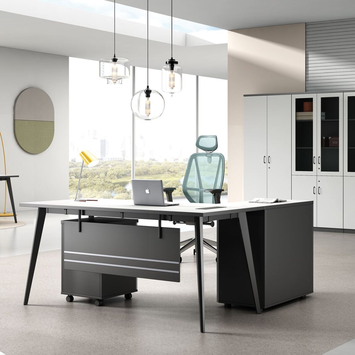 STATUS Γραφείο Γωνία Αναστρέψιμη, Απόχρωση Grey, Επιφάνεια Απόχρωση Άσπρο
