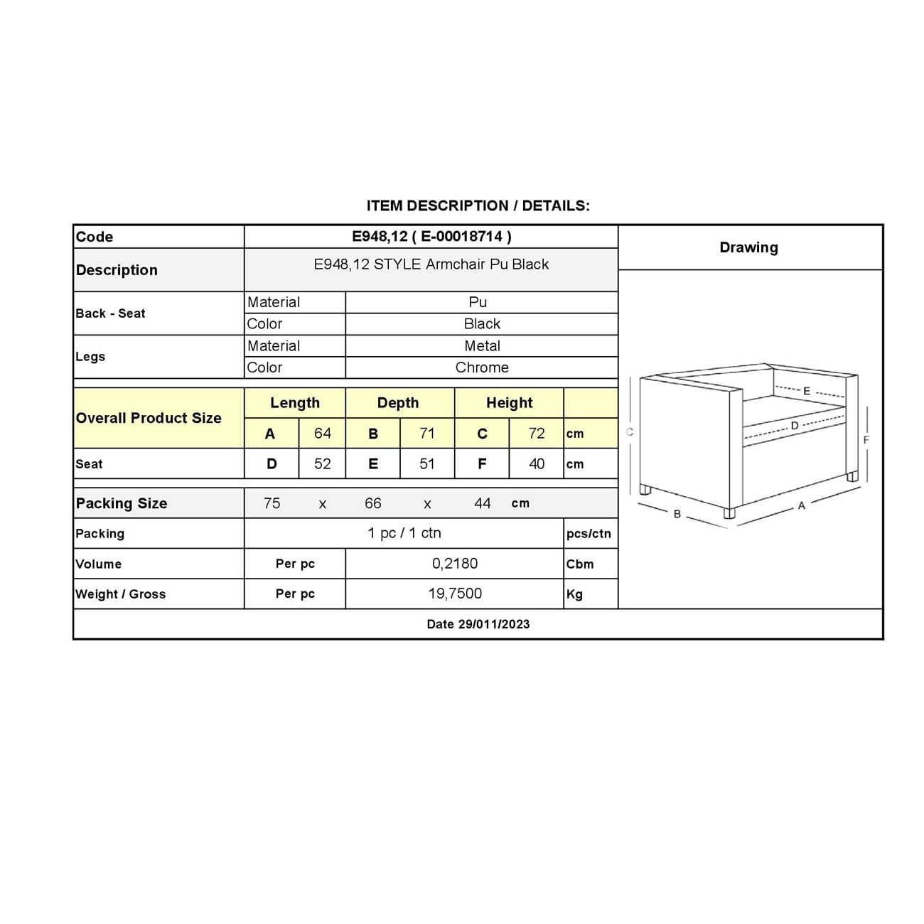 Ε948,12 STYLE Πολυθρόνα K/D Pu Μαύρο
