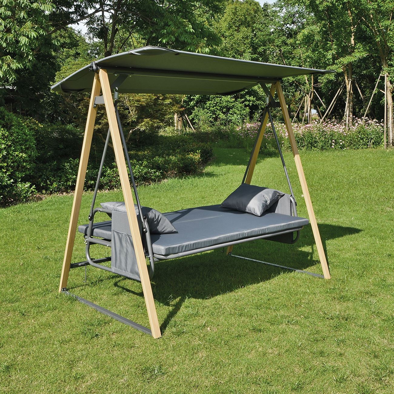SURF Κούνια 3θέσια – Κρεβάτι, Μέταλλo Βαφή Φυσικό & Ανθρακί, Ύφασμα Γκρι