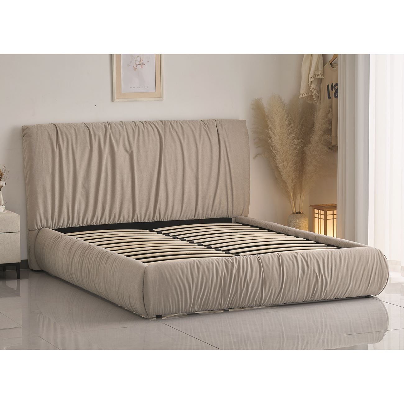 TOKYO Κρεβάτι Διπλό, για Στρώμα 160x200cm, Ύφασμα Μπεζ
