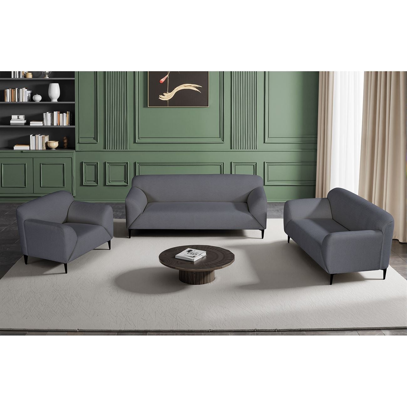 VICTORIA Set Σαλόνι-Καθιστικό Πολυθρόνα-2Θέσιος-3Θέσιος, Ύφασμα Σκούρο Γκρι