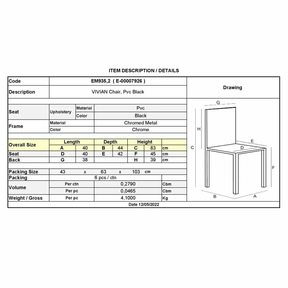 ΕΜ935,2 VIVIAN Καρέκλα Χρώμιο/Pvc Μαύρο