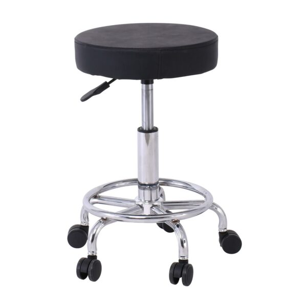 GLORY Σκαμπό με υποπόδιο, Βάση Χρώμιο, PU Μαύρο, Περιστρεφόμενο, Τροχήλατο (Φ35 H.47/61cm)