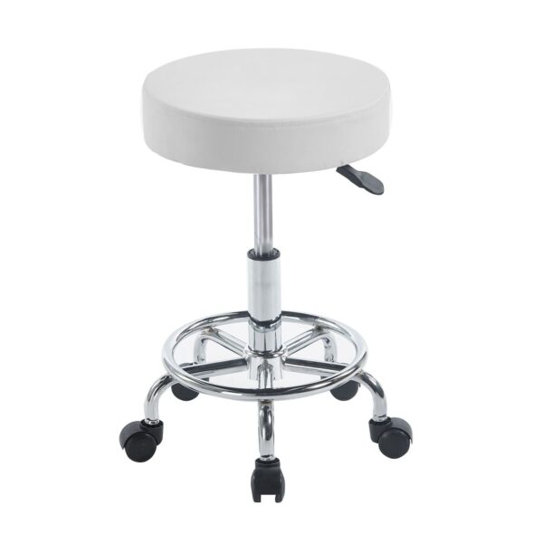 GLORY Σκαμπό με υποπόδιο, Βάση Χρώμιο, PU Άσπρο, Περιστρεφόμενο, Τροχήλατο (Φ35 H.47/61cm)