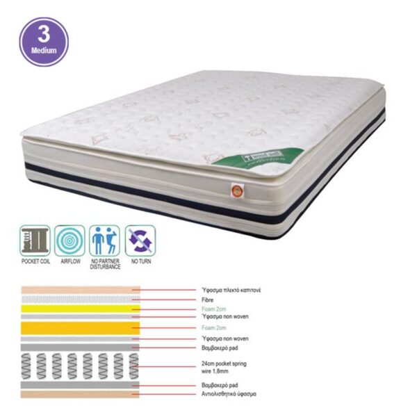 ΣΤΡΩΜΑ Pocket Spring + Foam με Ανώστρωμα Foam, Μονής Όψης (3) (160x200x(31/29)cm)